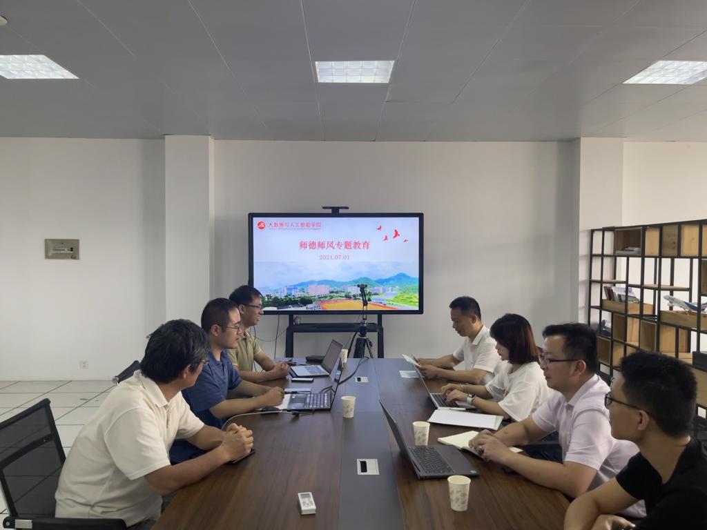 7月1日下午,我院开展期末教学工作研讨会暨师德专题教育活动,学院党政班子成员及部分教师于五马山校区教学楼701参加会议,其余教师借助钉钉平台于线上参与此次会议。
