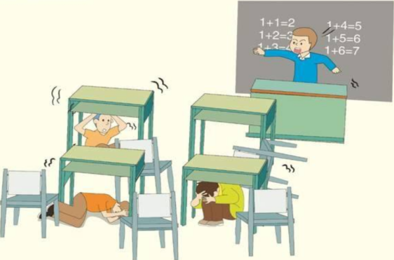 ①正在学校上课时:要在教师指挥下迅速抱头,躲在各自的课桌下。或有组织地迅速撤离教室,到安全的地方。