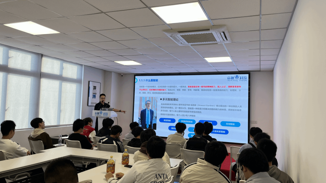 参观过后,帝视科技研发骨干为我院师生带来一场干货满满的技术分享会。结合企业实际项目案例,从“AI技术如何从算法模型走向产业应用”展开,拆解技术研发流程、核心难点及解决方案——“一个成熟的AI产品,不仅需要扎实的算法功底,更要结合行业需求反复打磨,兼顾稳定性与实用性”“以工业质检项目为例,我们需要通过大量数据训练模型,精准识别产品微小缺陷,帮助企业提升质检效率与精度”。