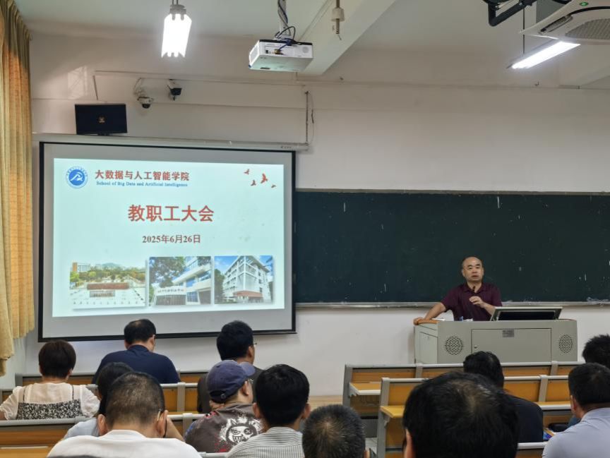 2025年6月26日下午,我院在石竹山校区信息工程中心103教室召开期末教职工大会。会议由院党委书记陈国荣教授主持,全体教职工参加会议。