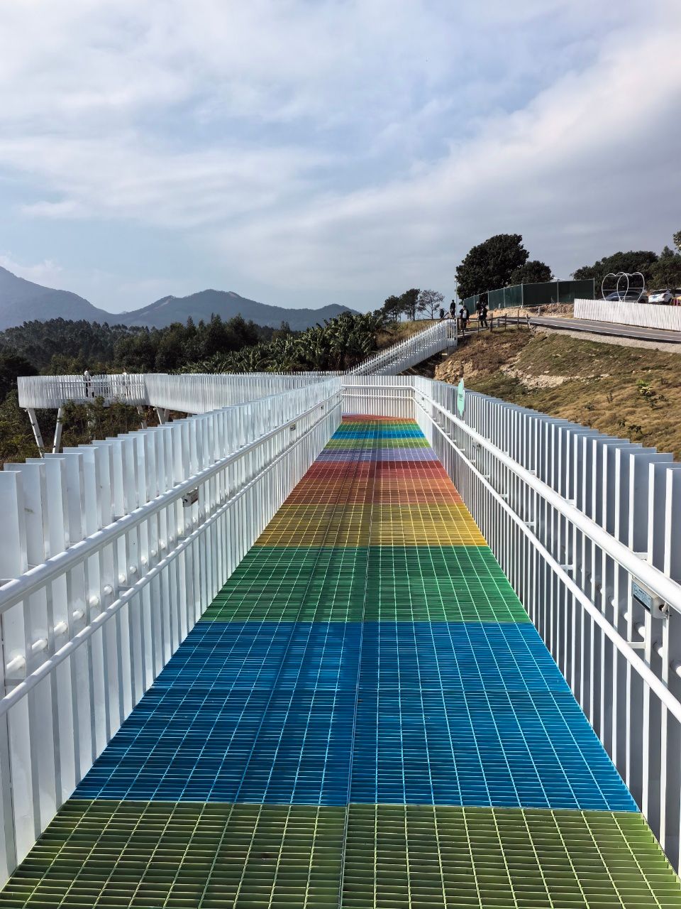 午餐后,活动场地切换至山顶的彩虹步道与草坪区。置身于山顶这条绚丽的彩虹步道上,四周的山峰披着深浅不一的绿装,穿插着红黄的深秋的色彩,山脚的东张水库光滑如镜,映照着整片晴好,心底被眼前的美景彻底点亮,盈满宁静的喜悦;草坪上,“掼蛋大赛”同步开战,牌桌间默契配合、斗智斗勇,围观者不时献计献策,将“友谊第一,比赛第二”的宗旨展现得淋漓尽致;烧烤K歌齐上阵 烟火气里话情谊。