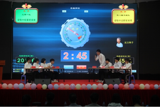辩论赛分为五个环节:开篇立论、攻辩、攻辩小结、自由辩论、总结陈词。辩题有:“爱情中过程重要还是结果重要”“年轻人看待世界应不应该抱有成见”“一见钟情和日久生情的爱情哪个更长久”。