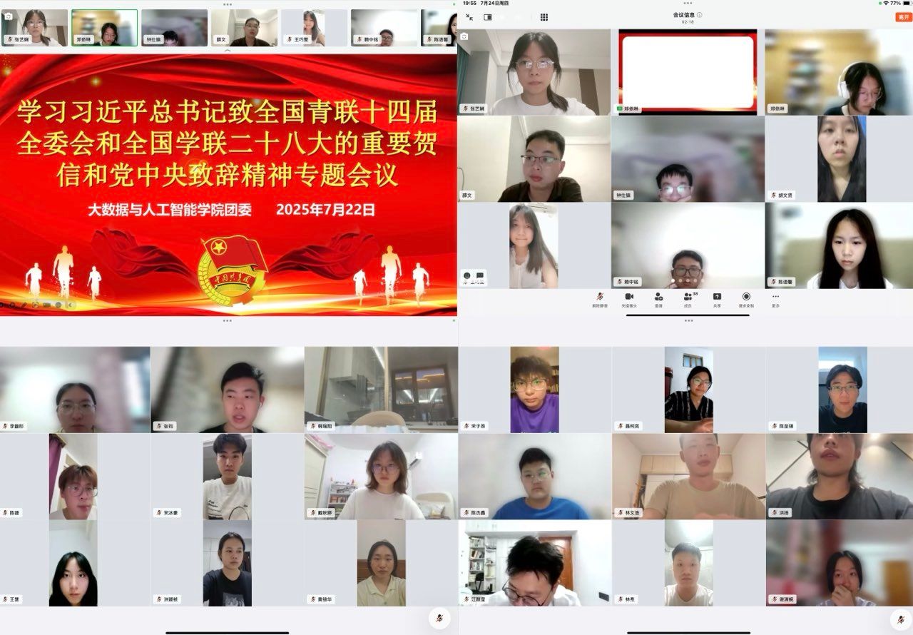 7月22日晚,我院团委学生会组织召开学习习近平总书记致全国青联十四届全委会和全国学联二十八大的重要贺信和党中央致辞精神专题会议。会议由学院团委副书记薛文老师、团学干部、班级团支书及学生代表共同参与。