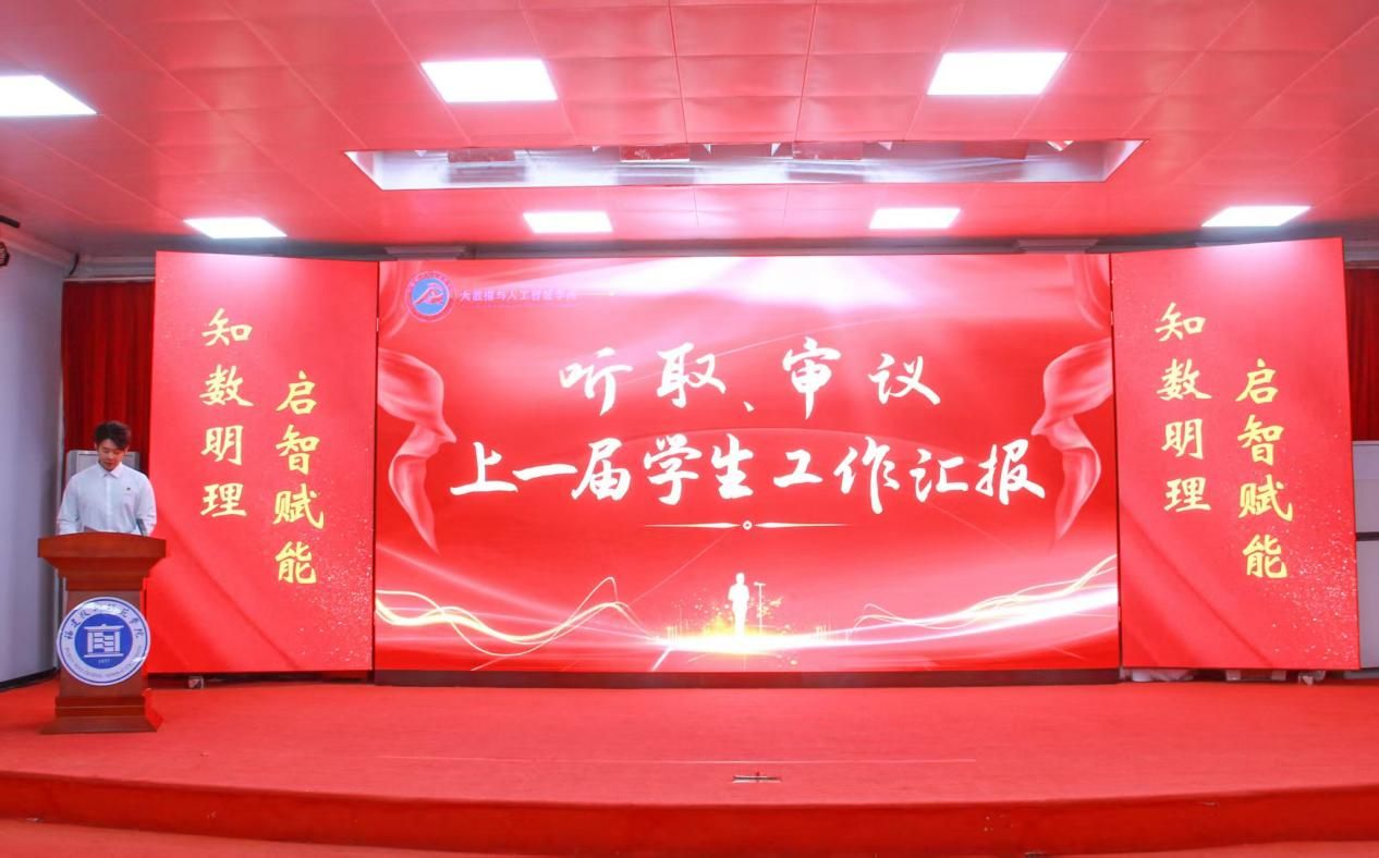 受上一届学生会执行主席杨晟的委托,由学生会主席团成员代表张钧进行上一学年学生会工作汇报。他系统复盘了院学生会的工作推进情况:以教育主题活动为抓手强化思想引领,以科技文化品牌活动为载体厚植校园“求知向学”氛围,以规范化建设为支撑提升队伍综合素养;始终聚焦主责主业、深化组织改革,从党史学习教育中凝聚奋进力量,持续开拓创新,着力塑造“有理想、懂同学、显朝气”的组织形象。