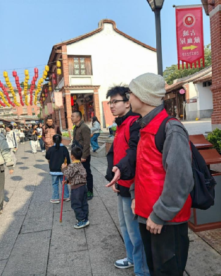 2月8日,志愿者们率先走进漳州博物馆、古城非遗博物馆,先随官方讲解员与非遗传承人潜心研学,解锁漳州历史文化密码,领略布袋木偶戏的灵动精巧、八宝印泥的匠心传承。随后各小组迅速进入服务角色,AI讲解组为游客提供智能讲解服务,游客扫码即可聆听个性化的文物与非遗故事;志愿引导组依托AI智能路线系统,为游客精准规划游览路径,指引民艺基地非遗展示点;数字记录组全程跟拍,用镜头捕捉非遗之美,完成素材初剪,为文化传播留存鲜活印记,在实践中夯实文化传承的青春根基。