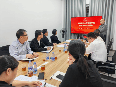 陈国荣书记从巡视整改进展情况、支部书记例会落实情况、党员教育管理与党风廉政建设情况、师生发展党员情况、存在问题与改进措施等方面做专题汇报,对学校党委一直以来对学院事业发展给予的支持和关心表示感谢,他强调,大数据与人工智能学院始终坚持党建引领,推动党建与教学科研深度融合,接下来将进一步聚焦重要方向、重大任务,攻坚克难,力争重大突破。