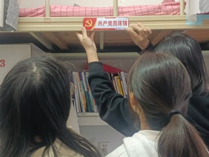活动后,各楼栋支部书记带领学生党员代表深入学生党员宿舍挂牌并张贴党员床铺标签。