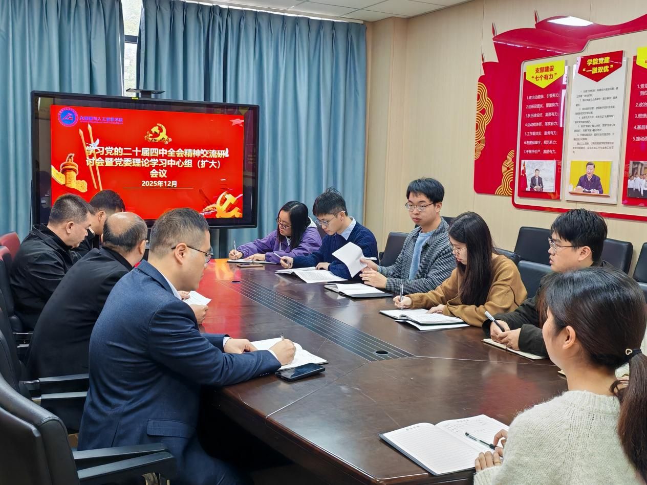 为深入学习贯彻党的二十届四中全会精神,深刻领会党中央关于“十五五”时期发展的战略部署,切实把思想和行动统一到全会精神上来,2025年12月19日,学院在明德4-503A会议室召开学习党的二十届四中全会精神交流研讨会暨党委理论学习中心组(扩大)会议。参加会议有院党委理论学习中心组成员、科级以上干部、各党支部书记、辅导员等,会议深入交流学习体会,共同谋划落实举措。会议由学院党委书记陈国荣教授主持。