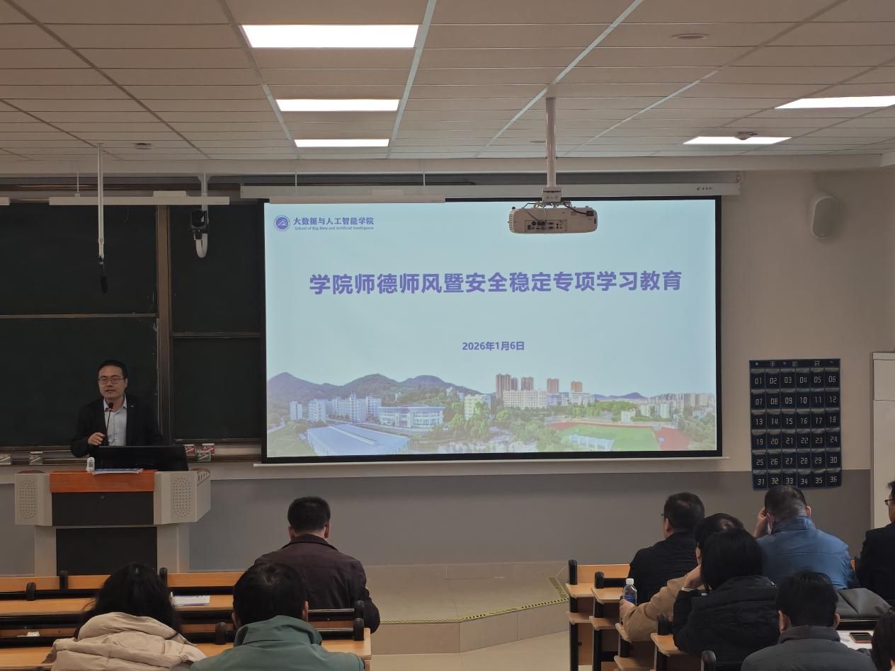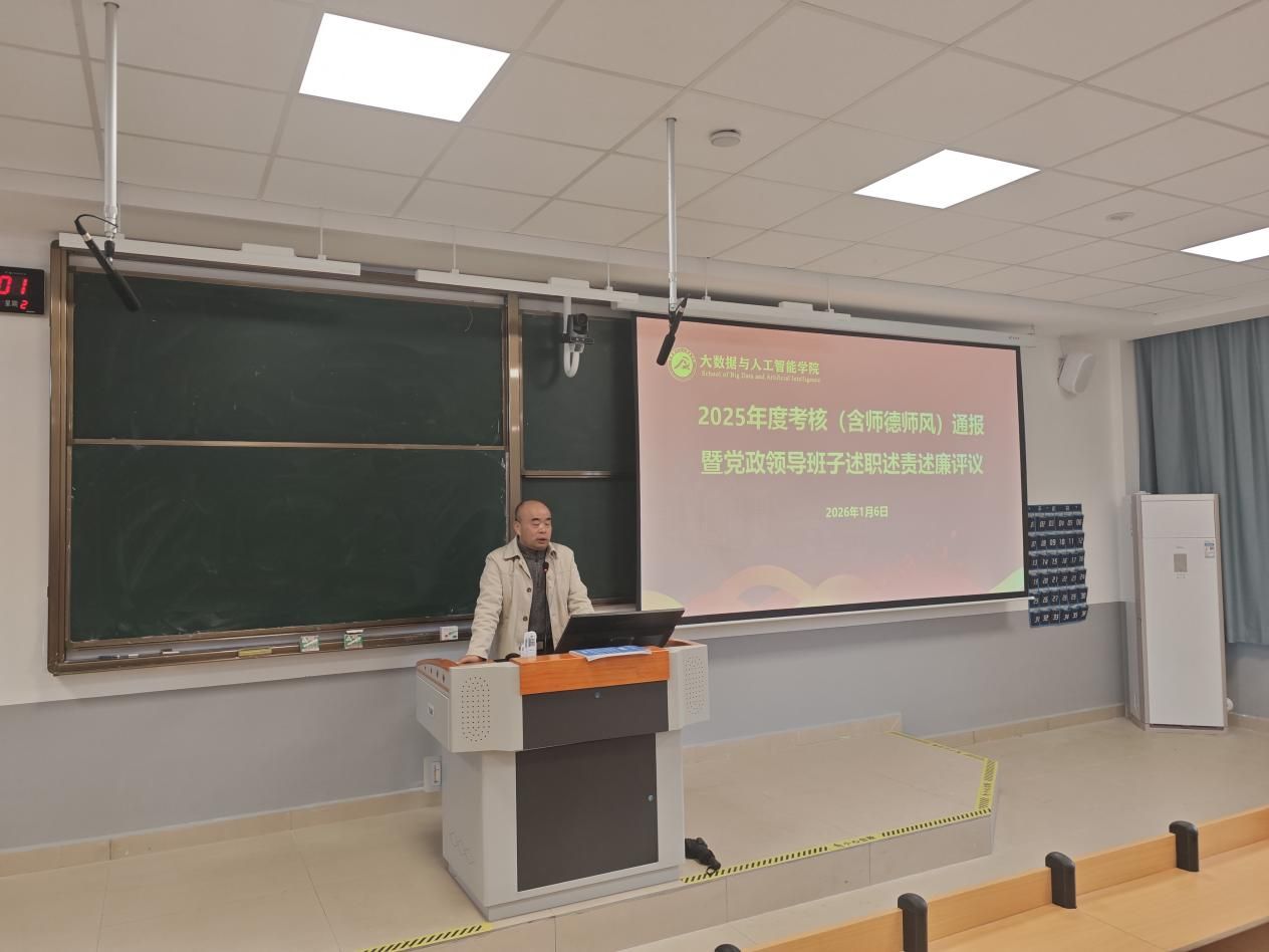 2026年1月6日下午,我院在明德4#504室召开2025年度党政领导述职述责述廉大会暨全院教职工大会。本次大会由学院办公室负责人林萍萍开场,全体教职工齐聚一堂,共同回顾过去一年的工作历程,展望新一年的发展前景。