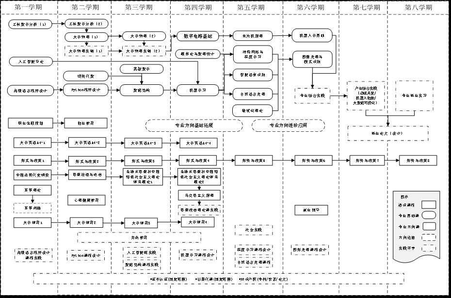 培养目标2:具有扎实的自然科学、人文社会科学和工程技术基础,掌握人工智能、计算机软硬件理论基本知识,能够用系统的观点分析、处理人工智能相关的科学研究和工程技术问题。