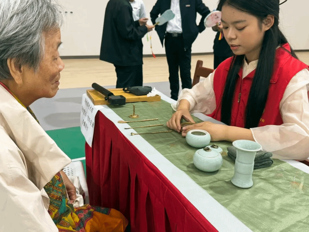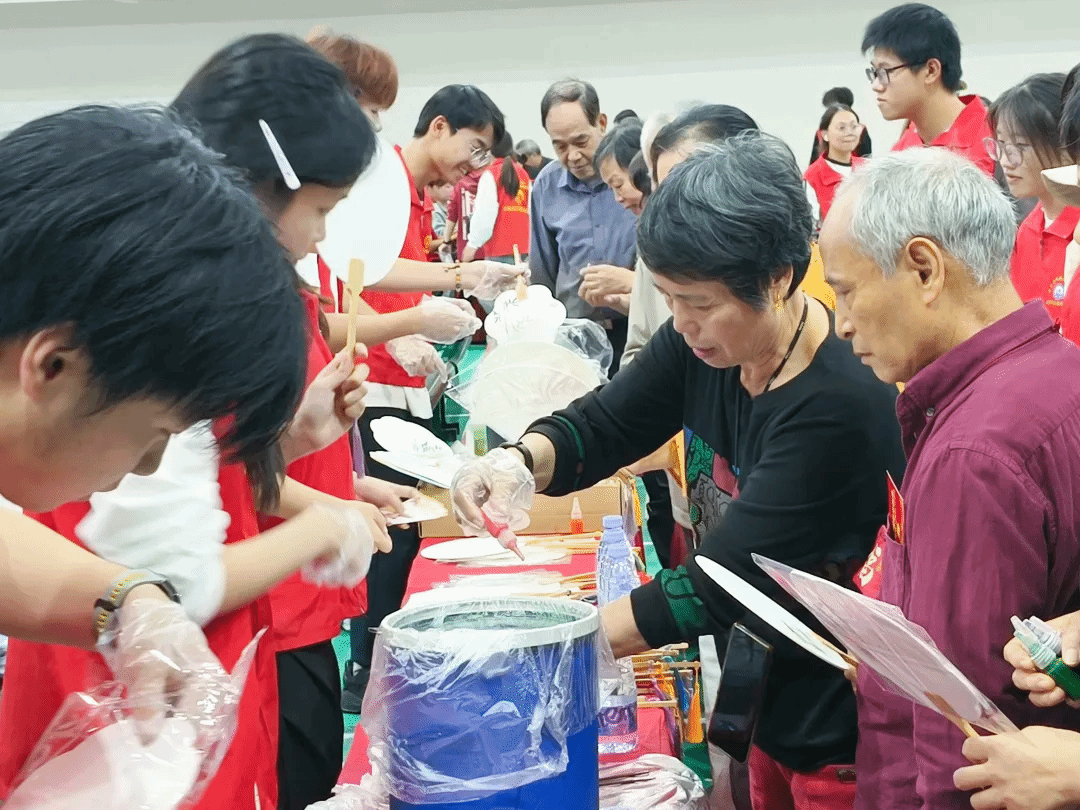 在 “巧手制香囊” 与 “妙笔绘漆扇” 中,老师们沉浸于创作的宁静,亲手制作独一无二的重阳纪念。